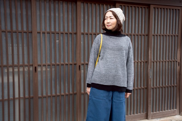 素材はインナーとアウターで違っていて インナー:アクリル100% アウター:アクリル70%、毛25%、アルパカ5%。2枚重ねでも、1枚ずつそれぞれでも着用可能です。フリーサイズ。ホールガーメントとは縫い目のないニットのこと。