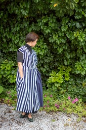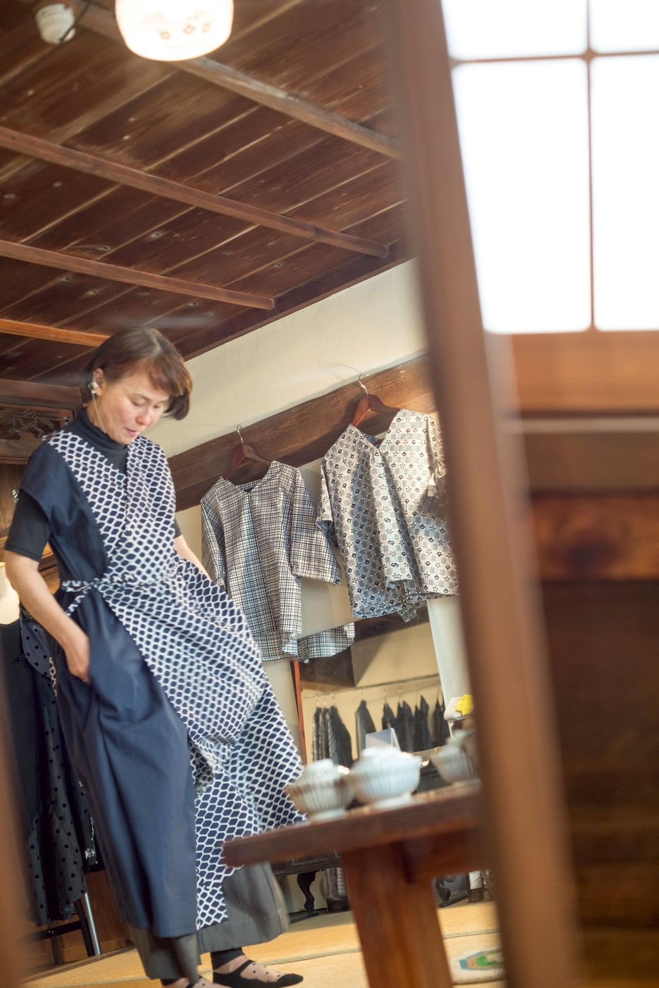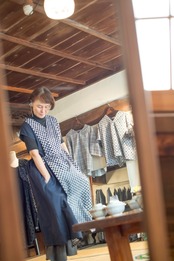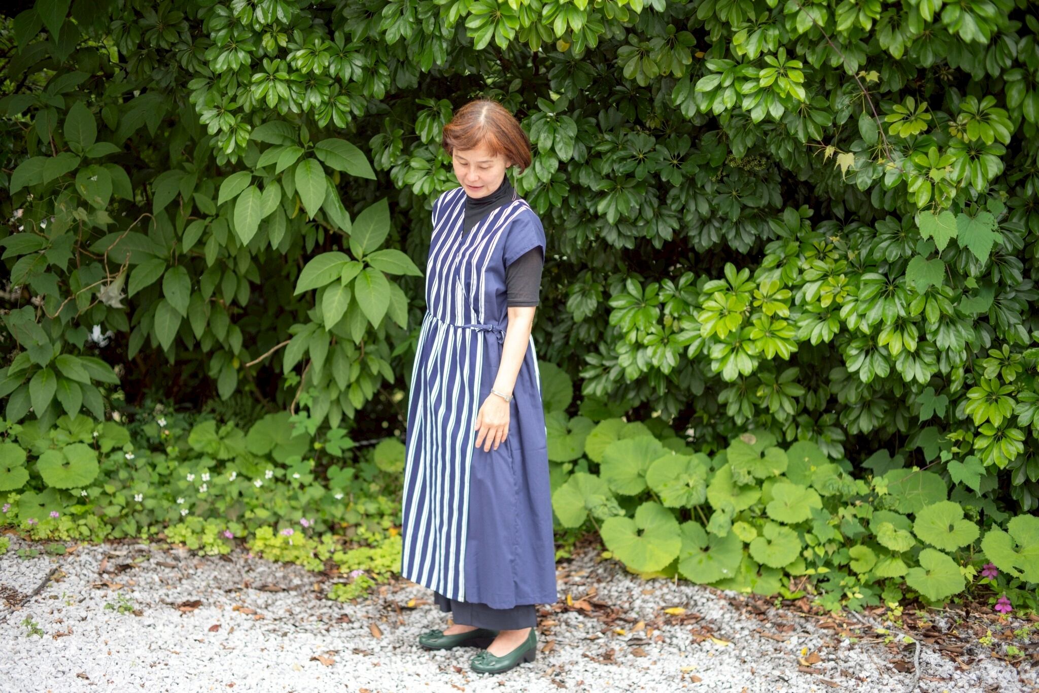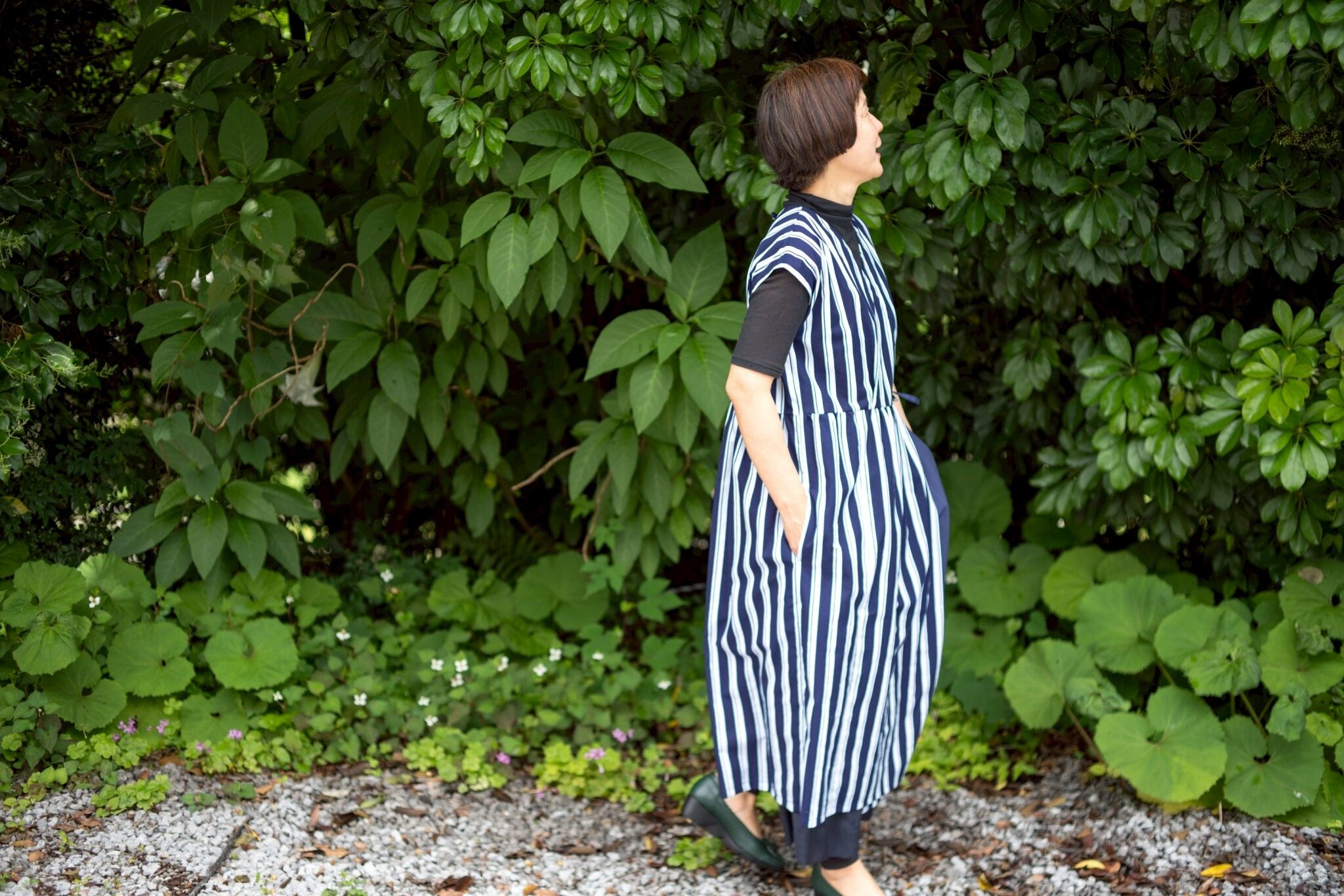 ushiromae作品。毎年人気のカシュクールワンピース。ushiromaeさんの作品はビンテージの浴衣生地を使った作品で、綿100%。(無地の生地との組み合わせのものも、もちろん綿を使っています。)前を開けて着たり、3wayで楽しめるカシュクールワンピース。インナー次第で冬以外は着用できます。フリーサイズ。着丈110cm。紐4本。