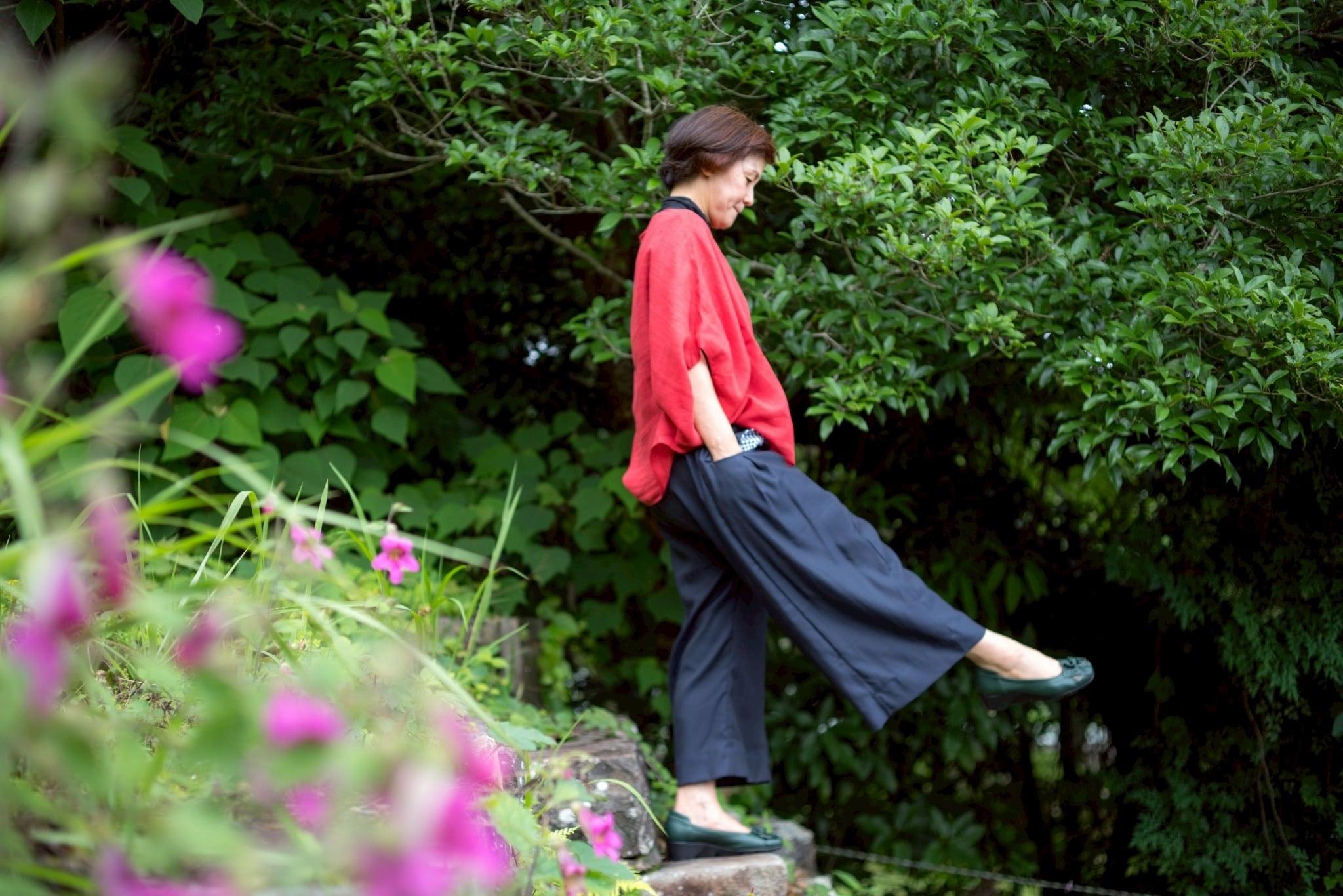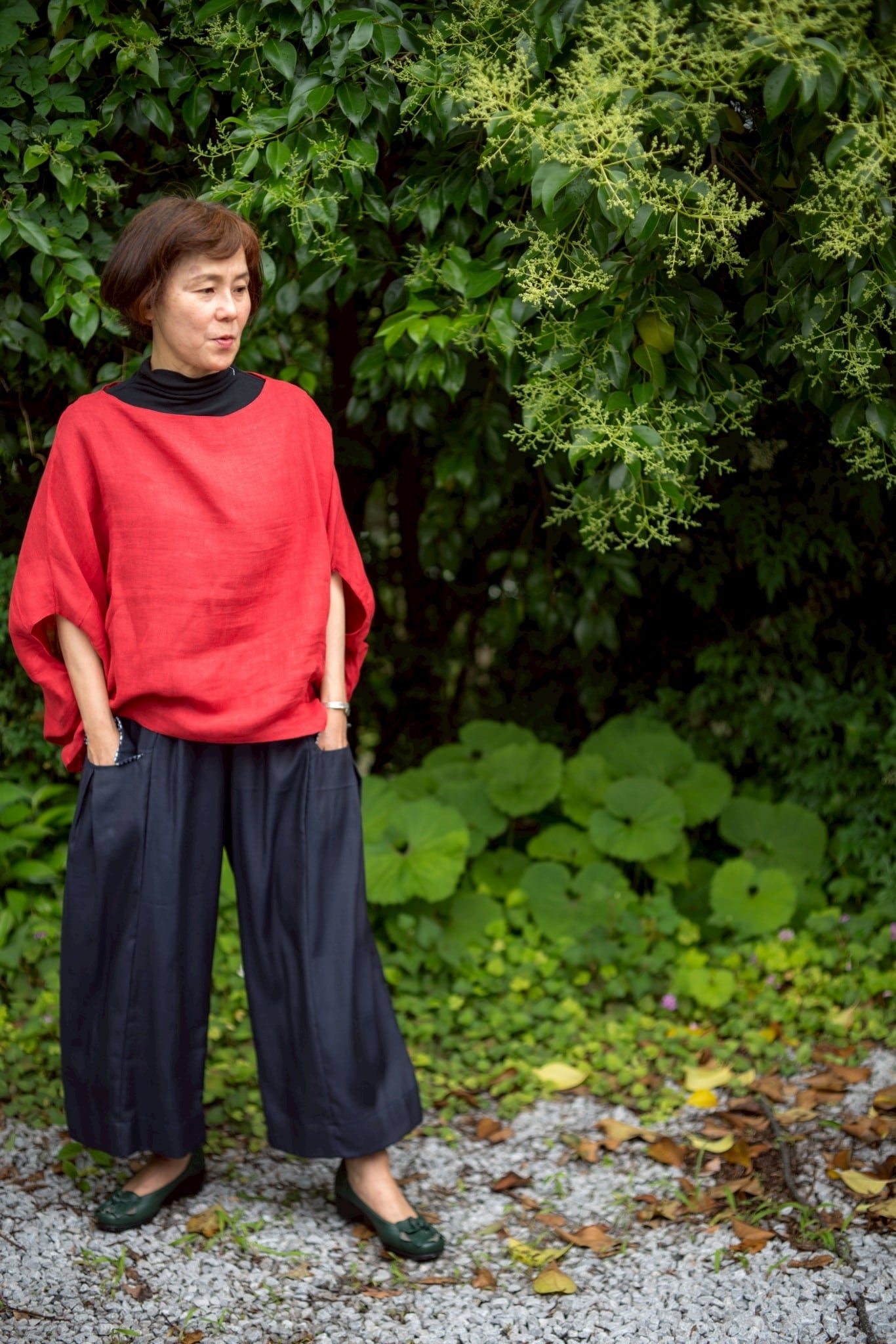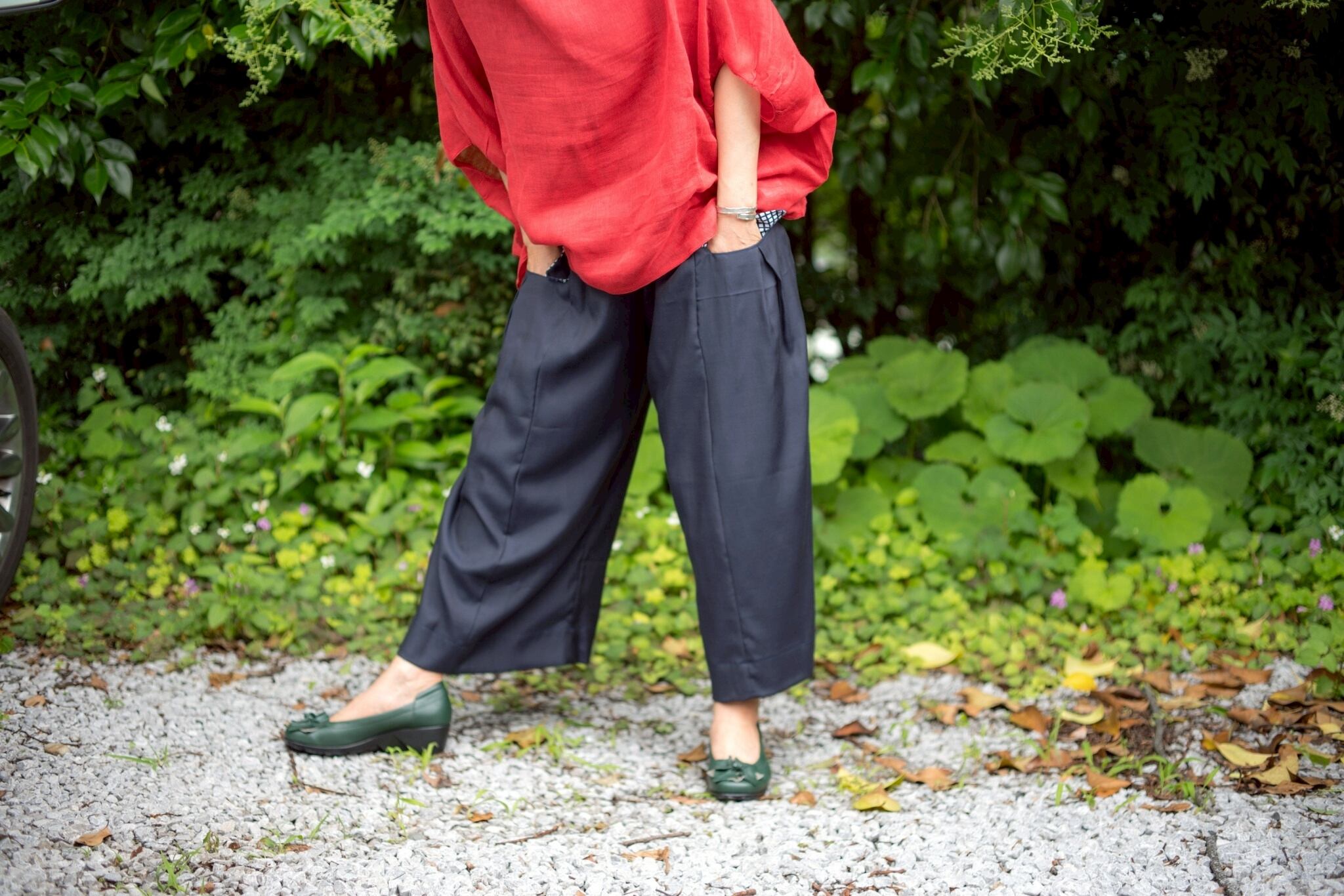 ushiromae作品。今年の新作で、キュプラと綿生地を使ったものです。ushiromaeさんの作品はビンテージの浴衣生地を使った作品がほとんどですが、こちらはフラップポケットの内側だけが浴衣生地で、チラッと見えます。お洗濯も洗濯機で可能です。