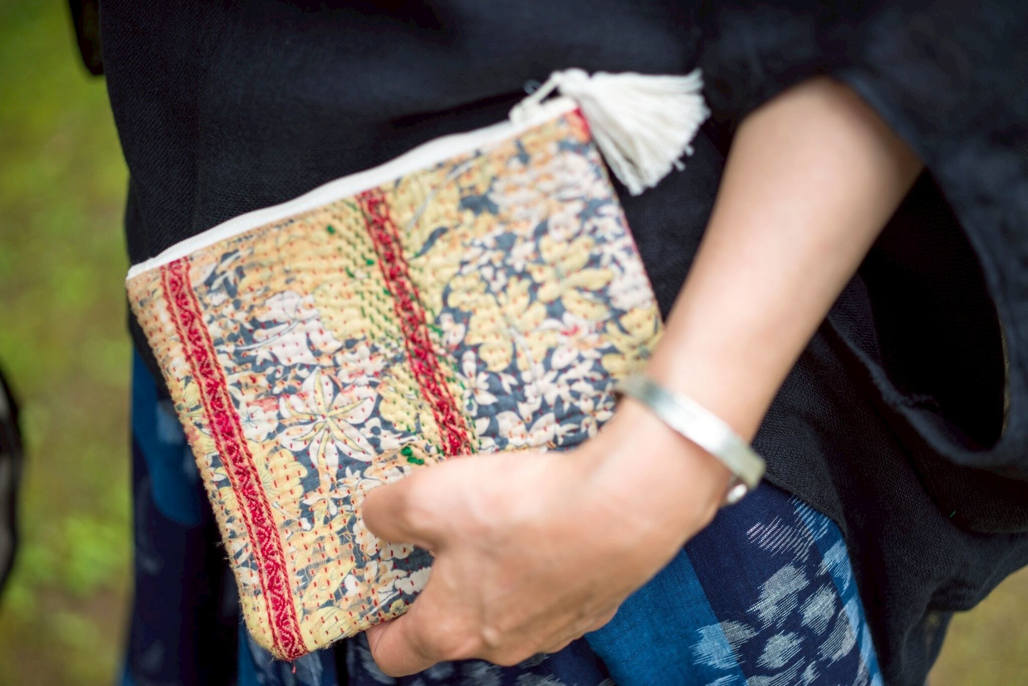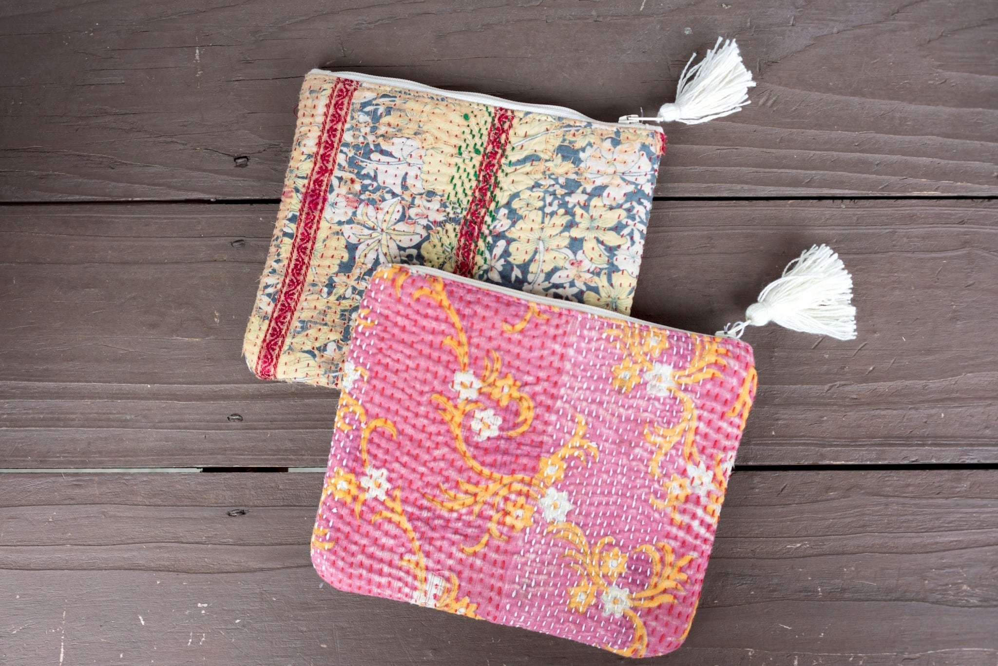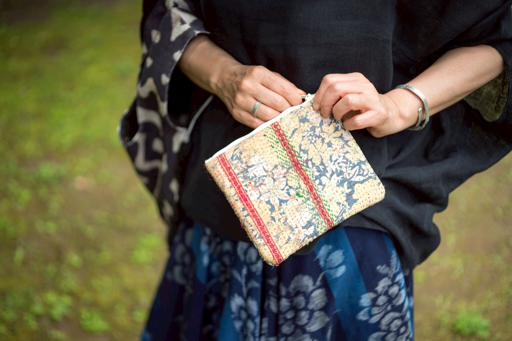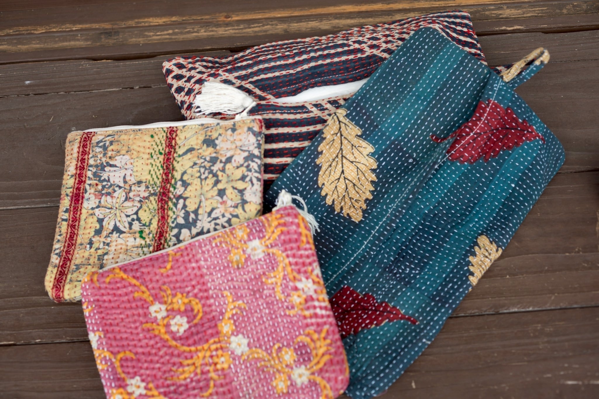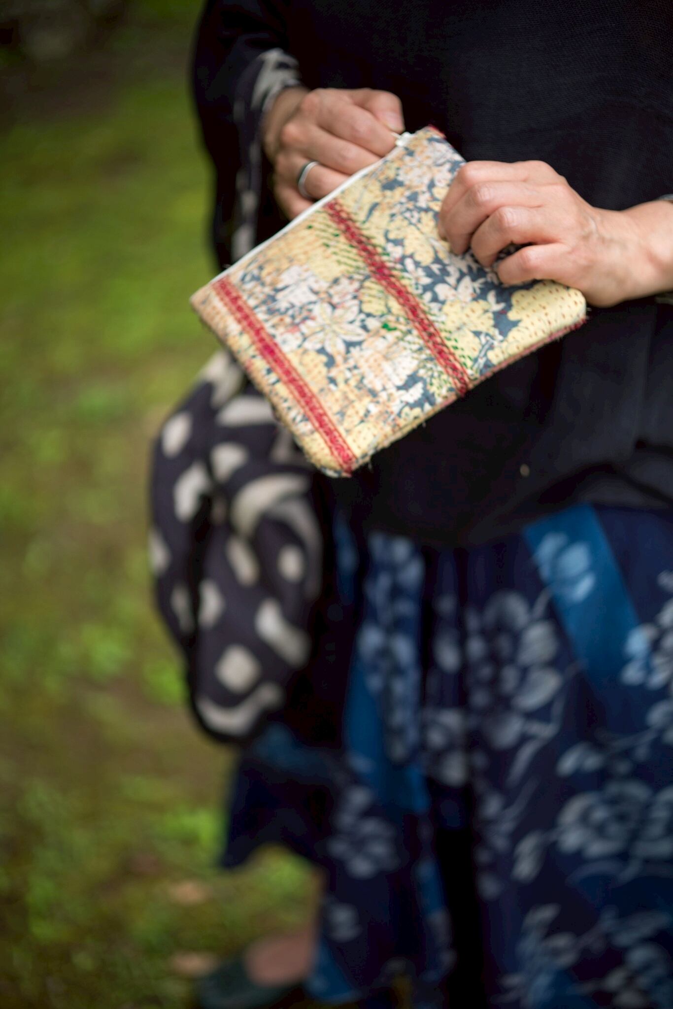 ビンテージよカンタキルトのポーチ。サイズは18✖️15cmと手におさまりの良いサイズ。