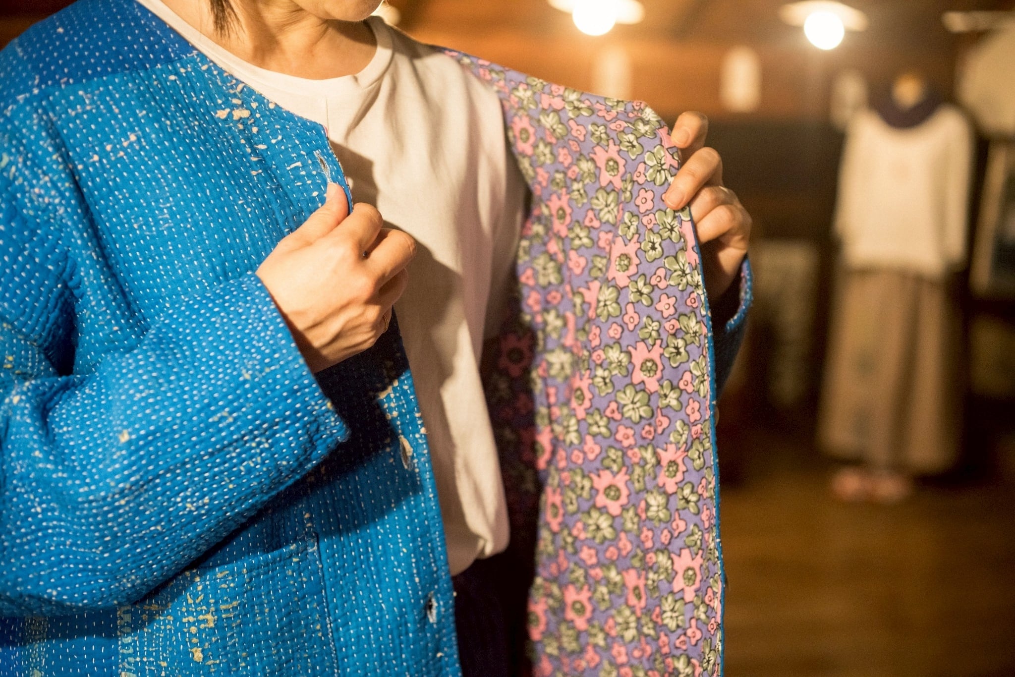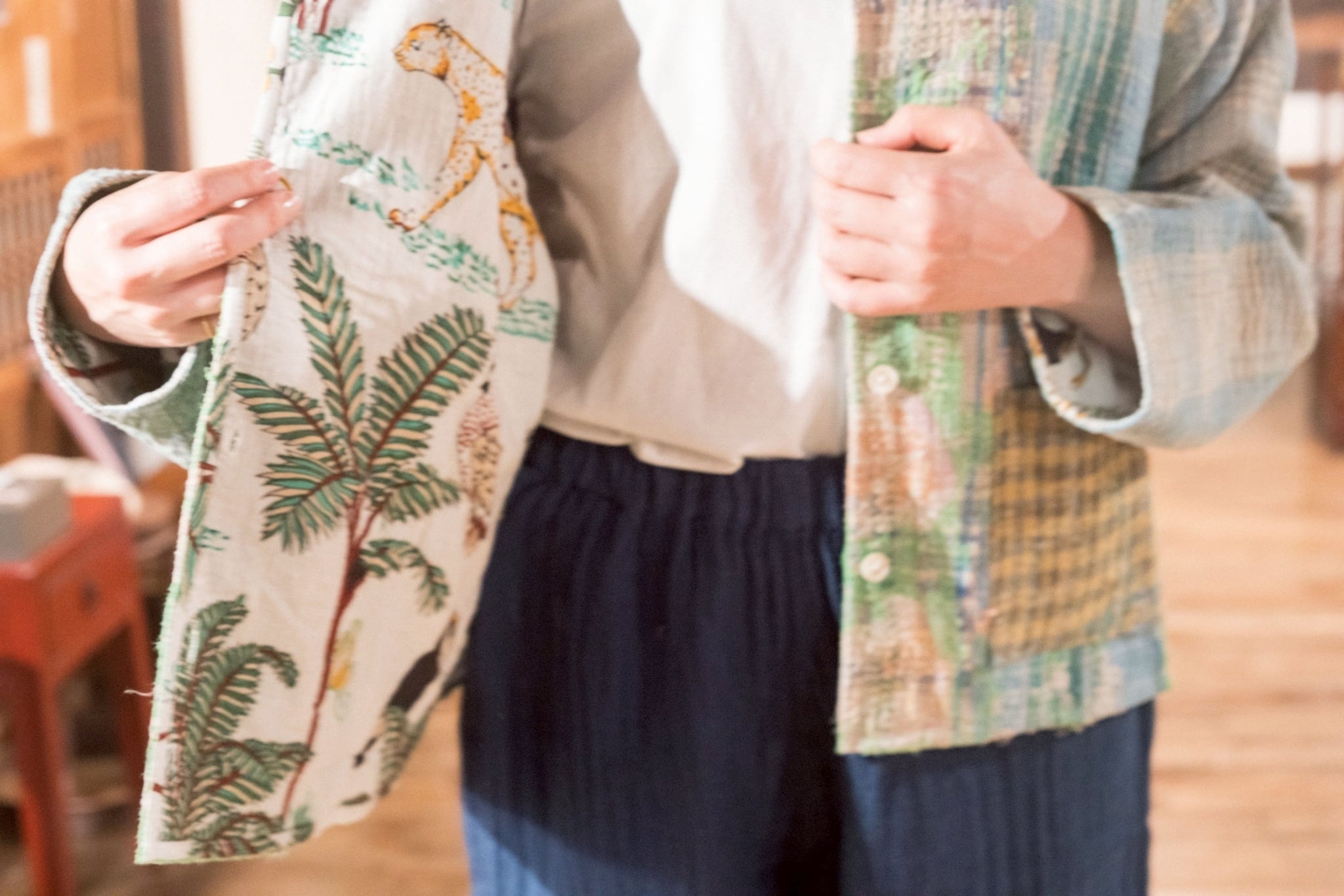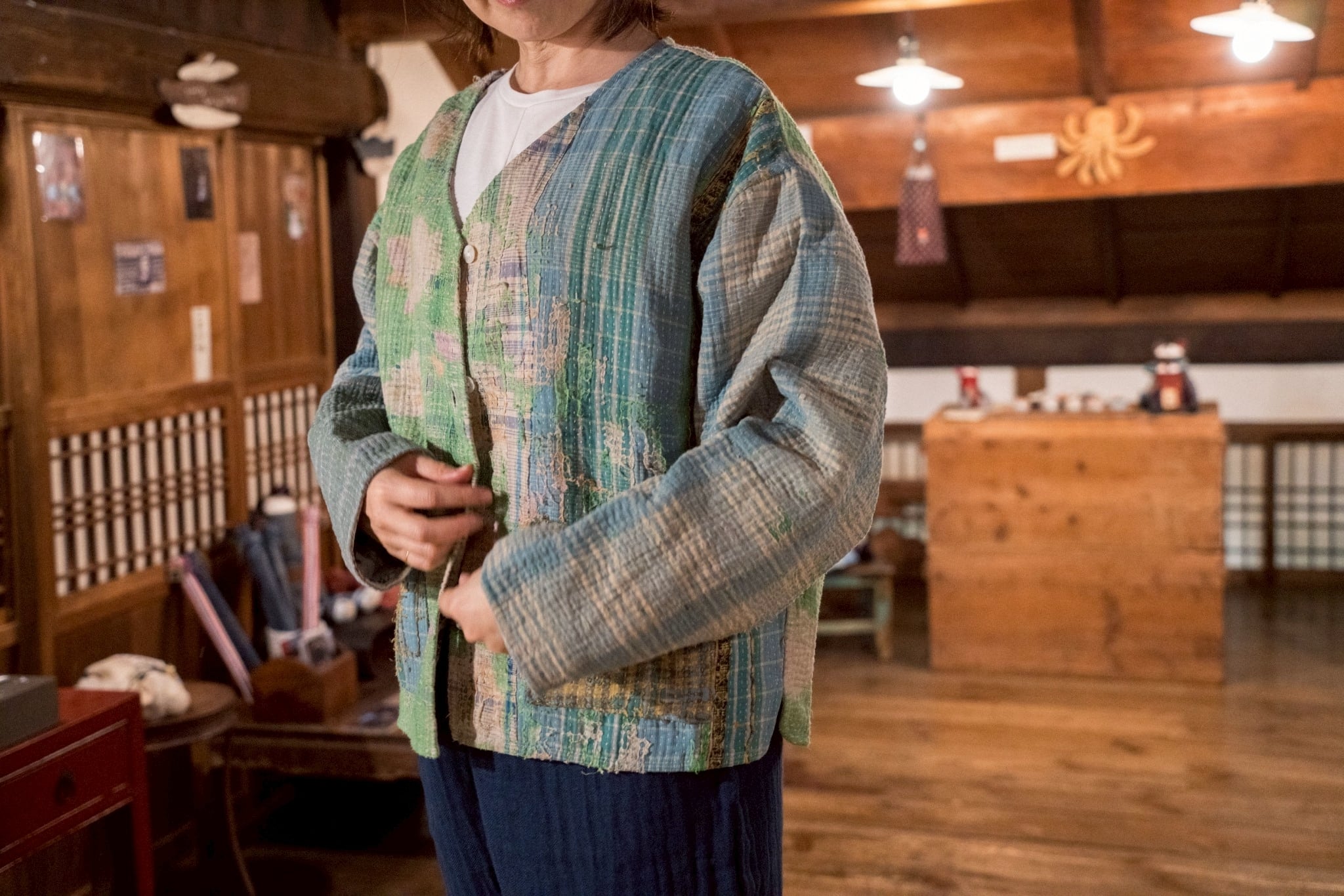 着丈約60cm。綿100%。秋から冬に、活躍しそうな裏地つきのジャケット。ヴィンテージ生地のため、少しダメージがあります。その味を楽しんでいただけたらと思います。
