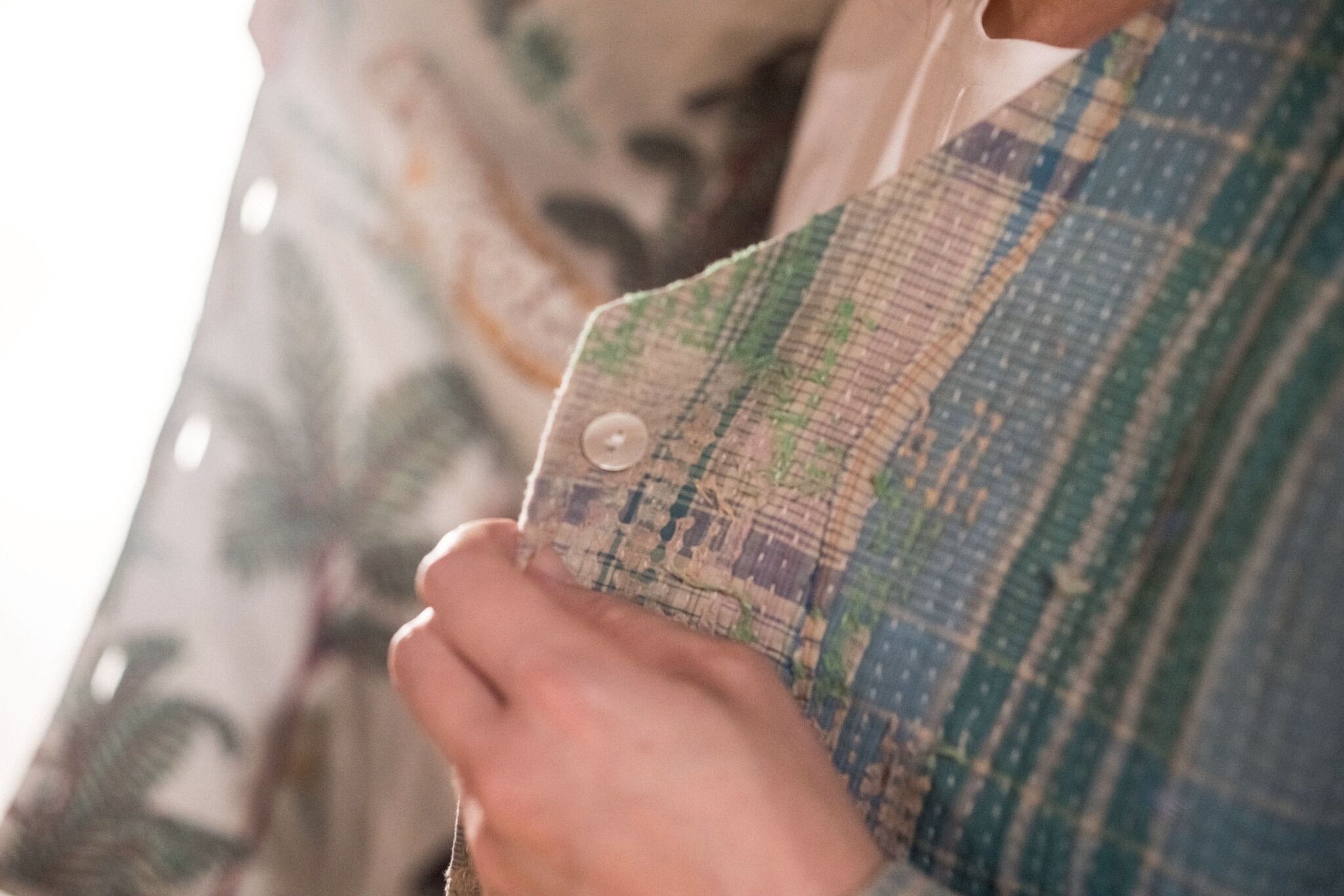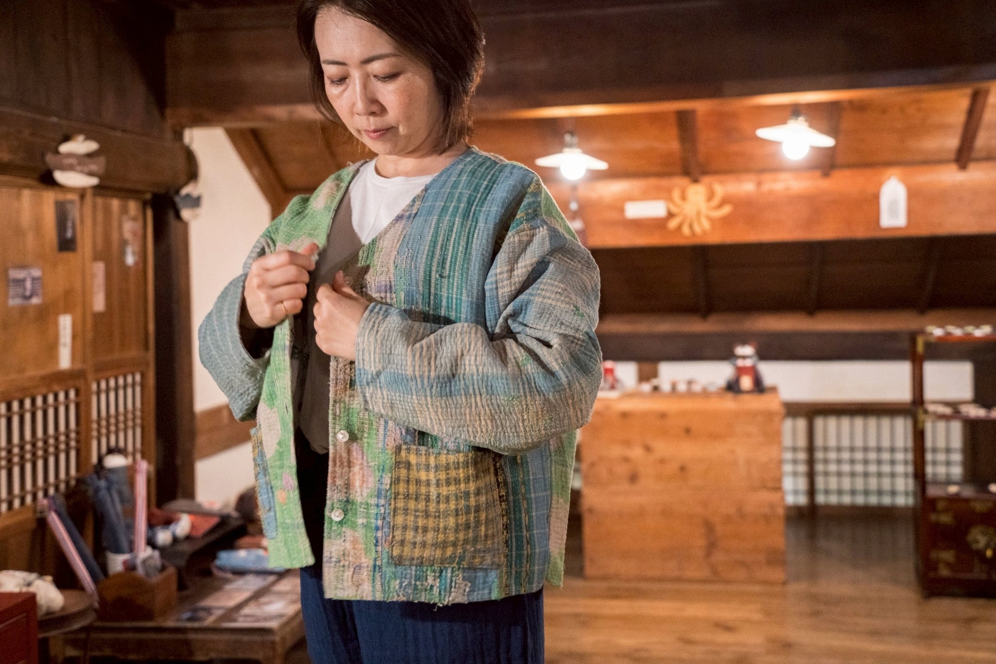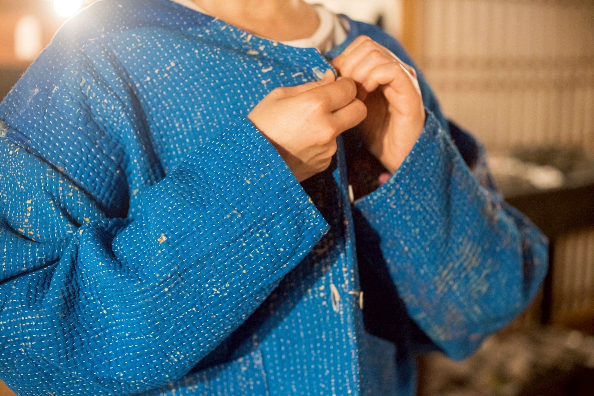 着丈約60cm。綿100%。秋から冬に、活躍しそうな裏地つきのジャケット。ヴィンテージ生地のため、少しダメージがあります。その味を楽しんでいただけたらと思います。
