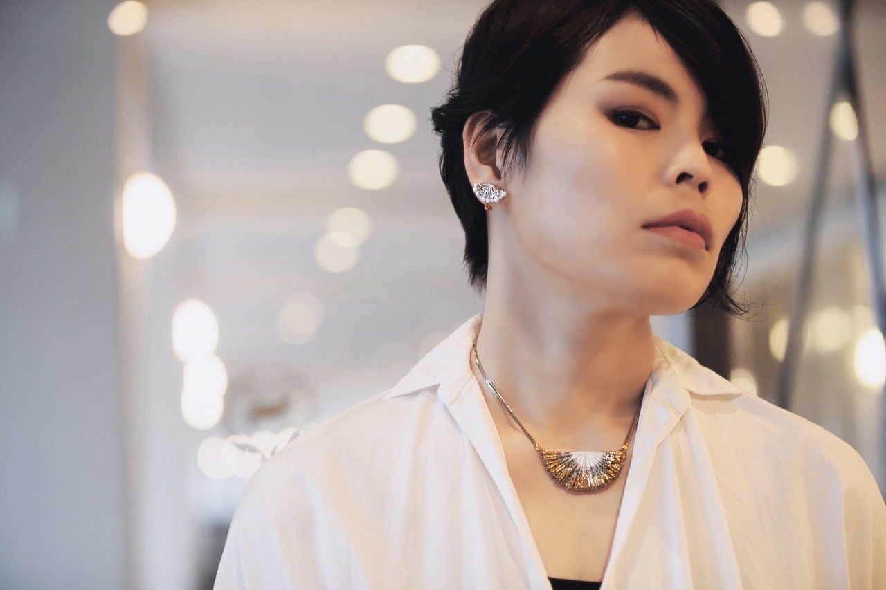 光が滲んで見える様子を表現したLuceシリーズ。大きめのネックレスです。サイズ横5.5cm.縦2.5cm。在庫があるのは、中央が白の白磁です。(クラウドファンディングの返礼品のおすすめ品として、カタログのNO3.に掲載されている商品です。)