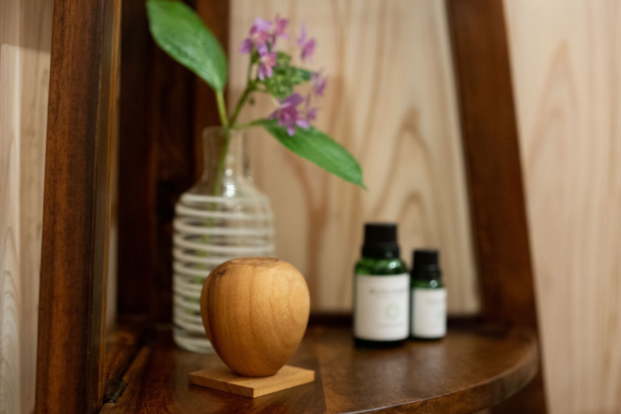 地元企業えこのはさんのくすのきで作られたディフューザー。天然木のクスノキからつくったアロマディフューザーです。