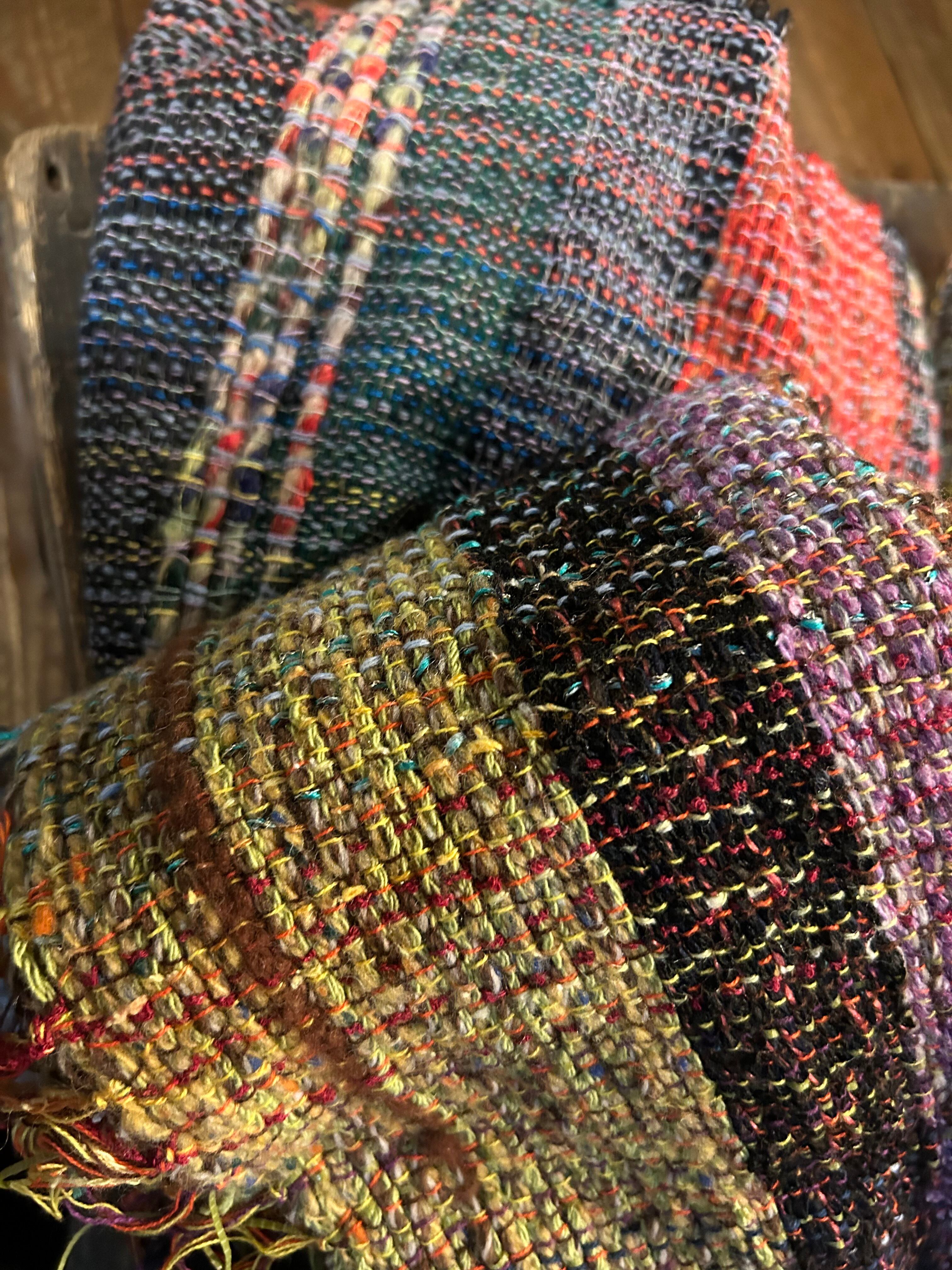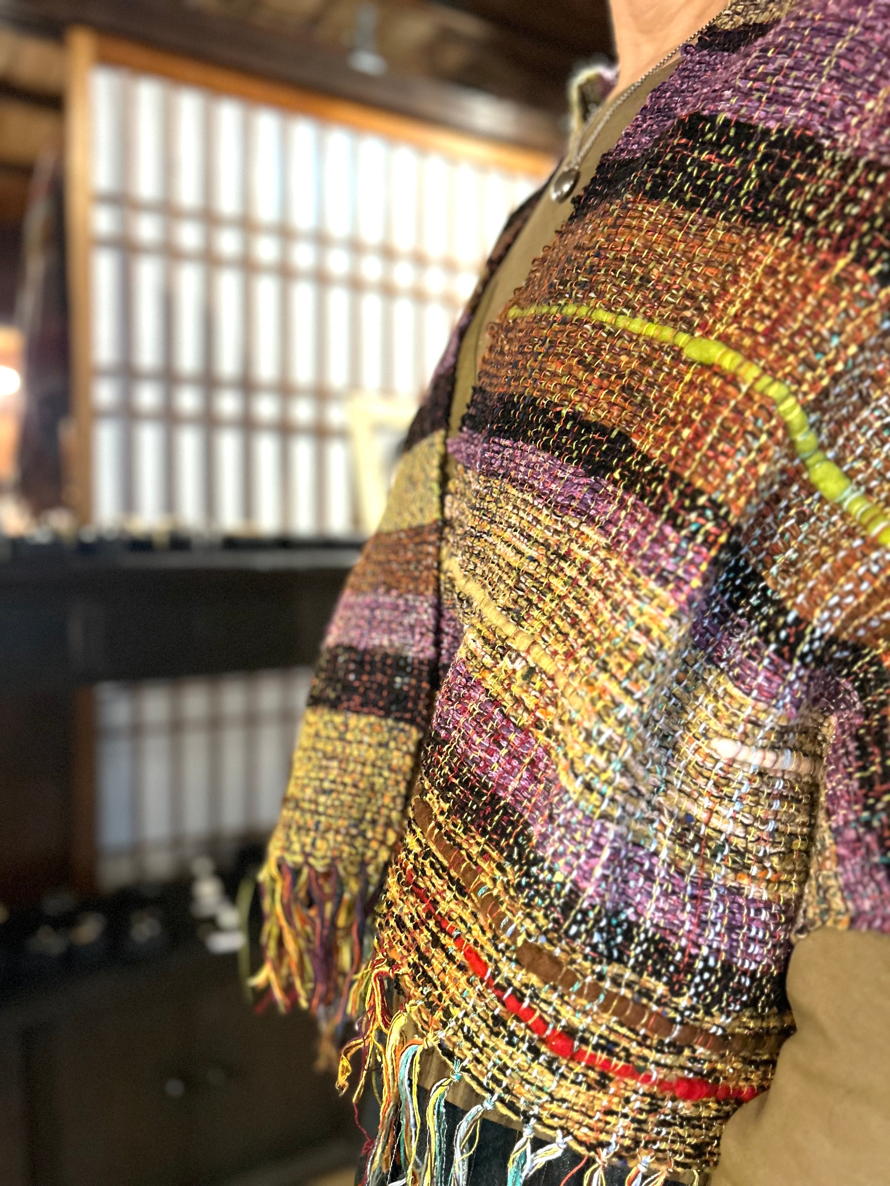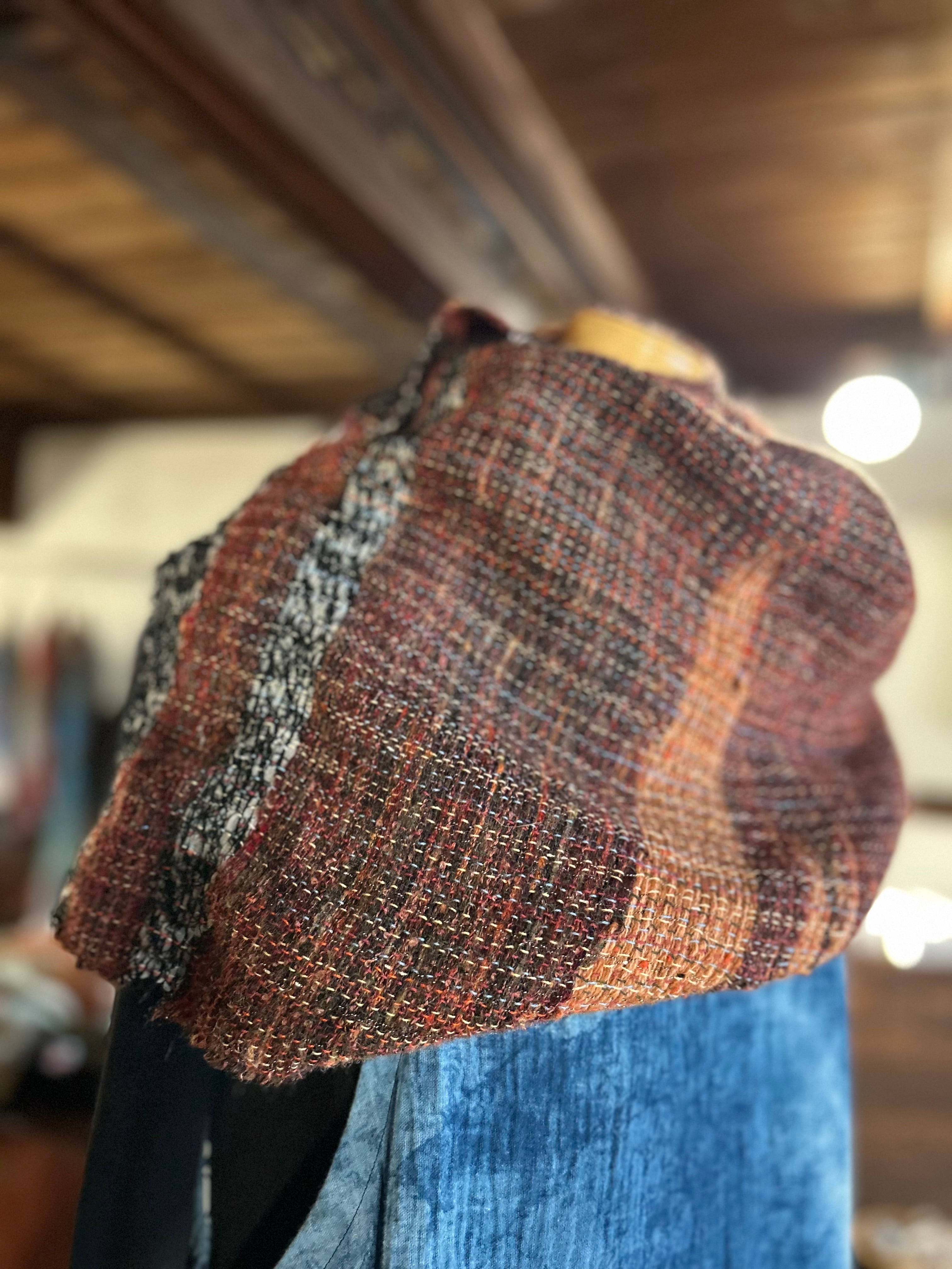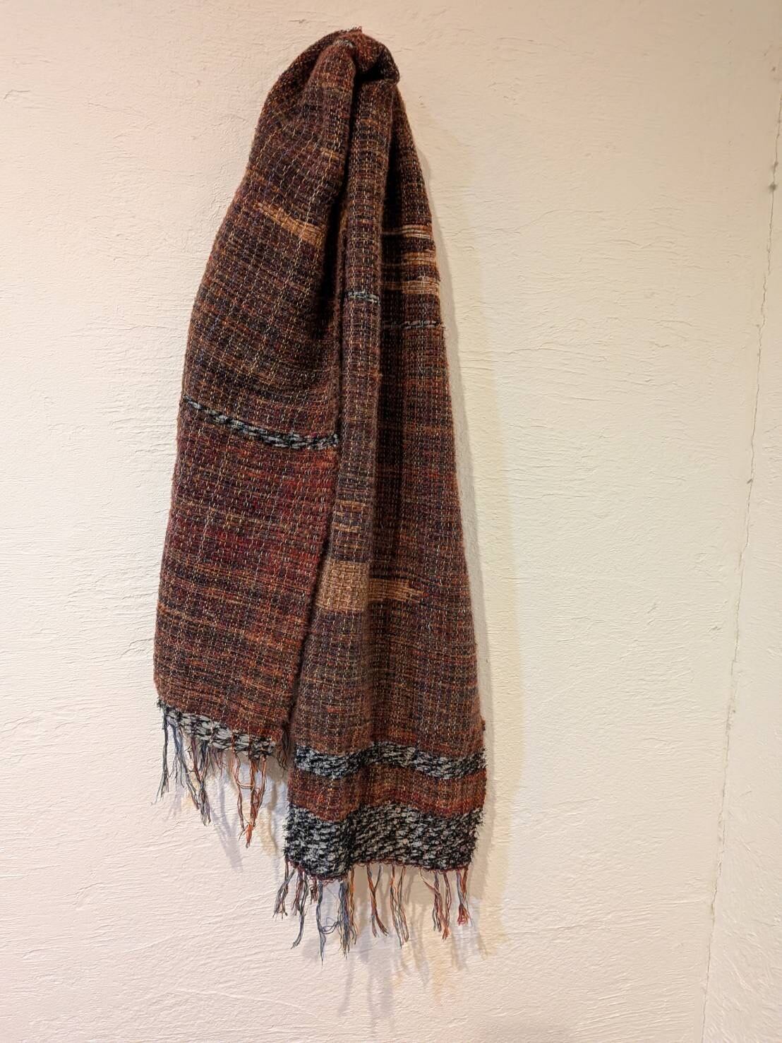 写真はあくまでもサンプルです。全て一点ものとなっております。注文が入りましたら、おまかせで作家さんに織っていただきます。お好きな色などお聞きします。サイズは40✖️約160cm。(クラウドファンディングの返礼品のおすすめ品として、カタログのNO.14に掲載されている商品です。)