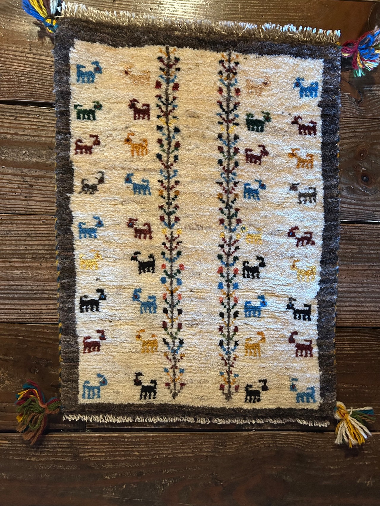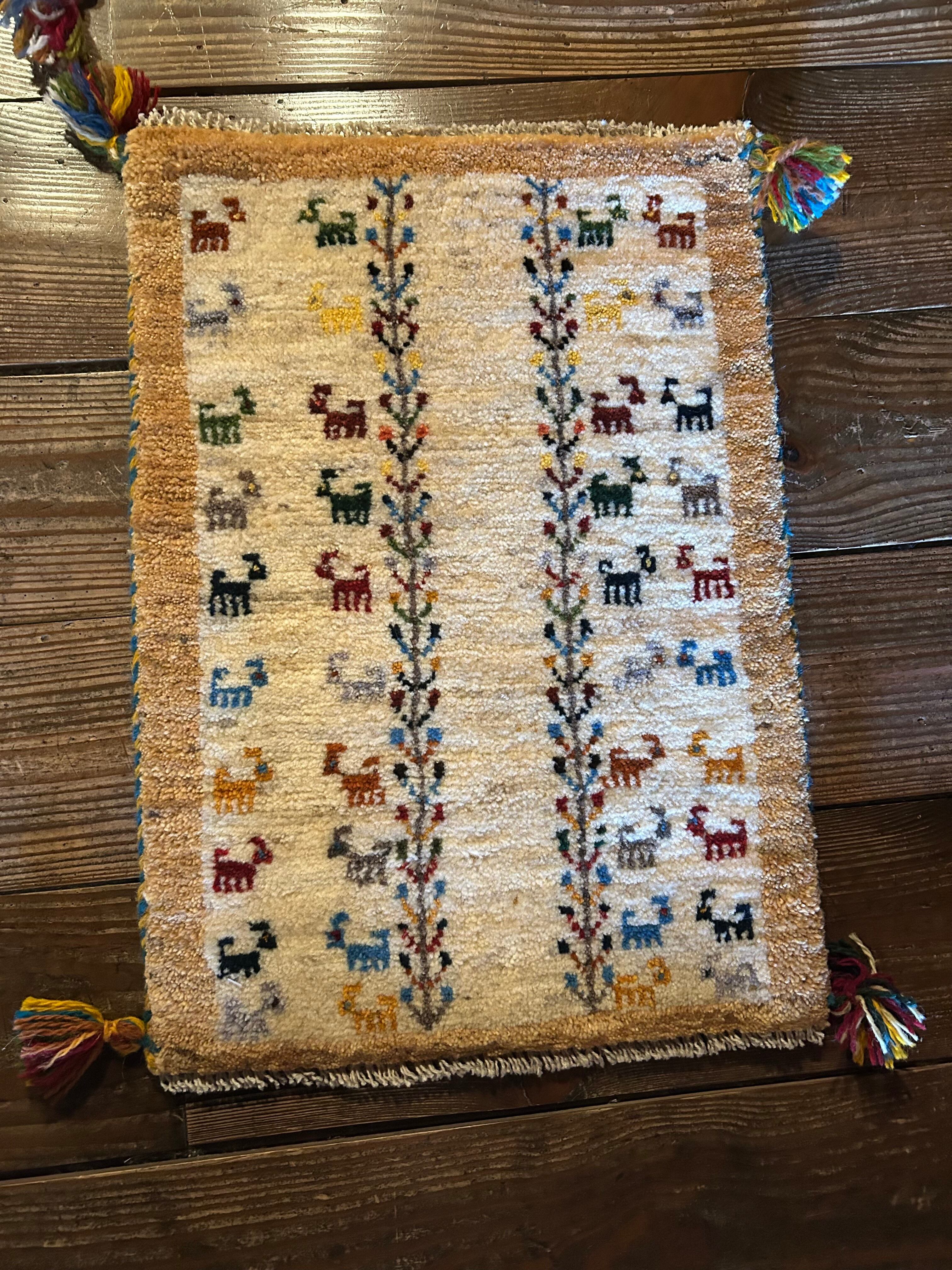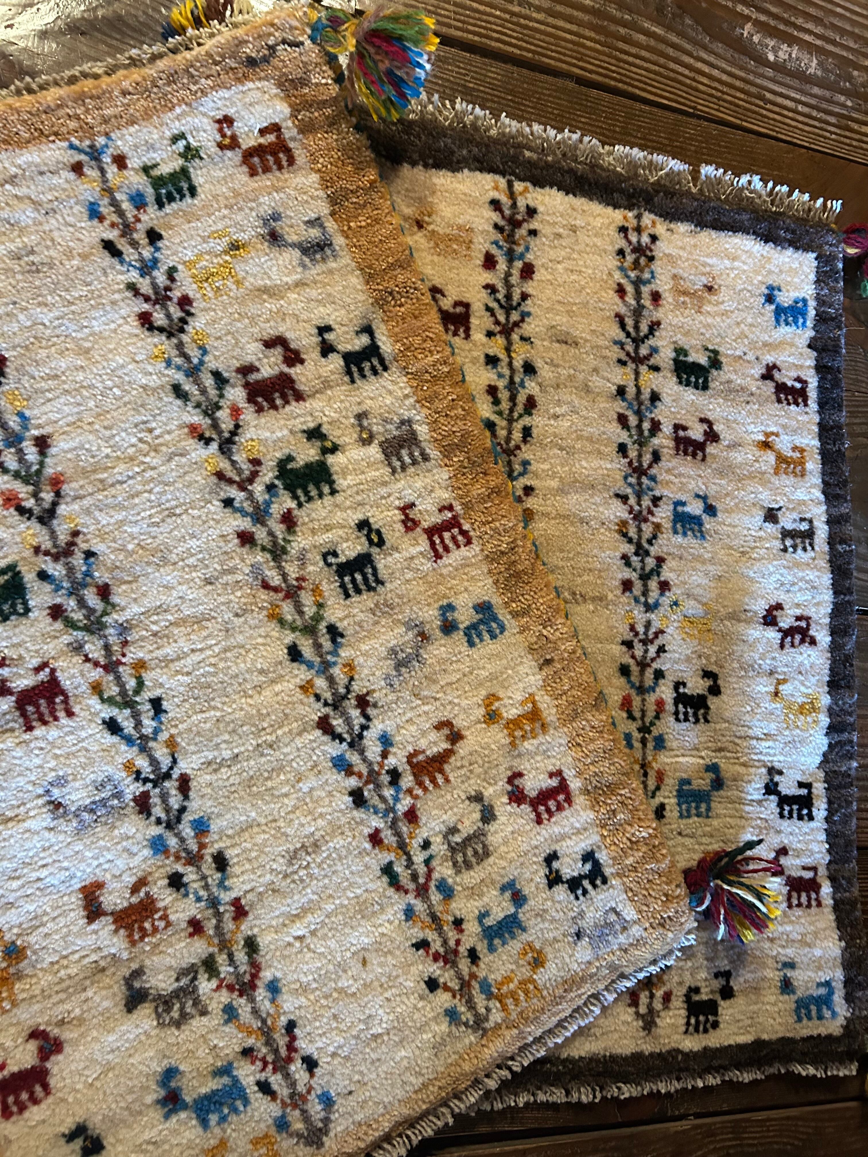 ギャベマット。イランの手織りじゅうたん。60✖️40cm。1枚1枚、サイズ縦横1-2cm誤差あります。ウール100%。手洗い可能。同じ葉柄が2枚あります。