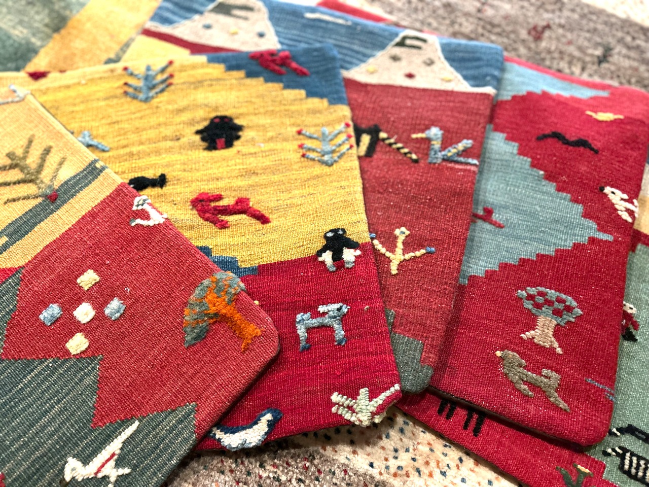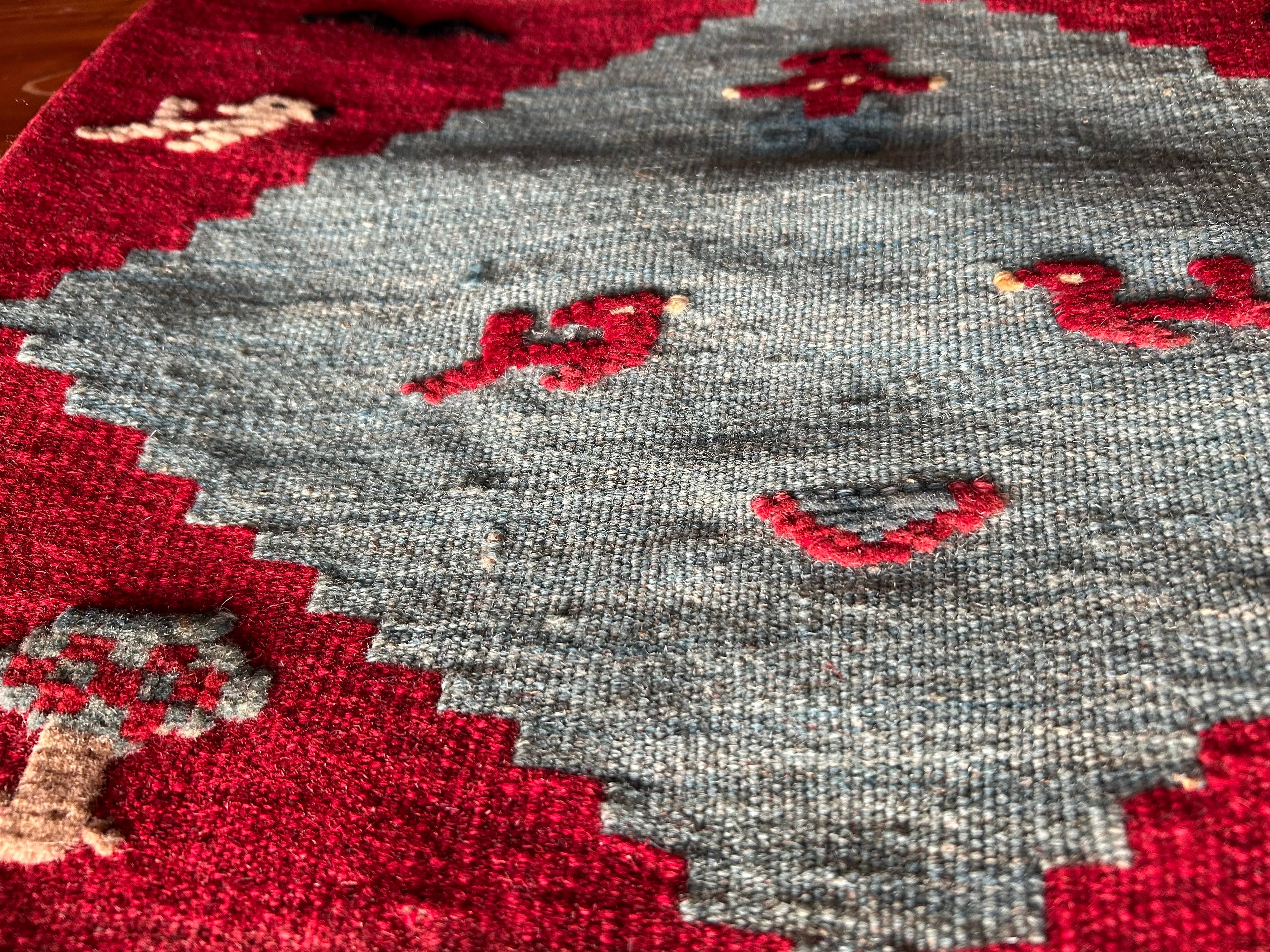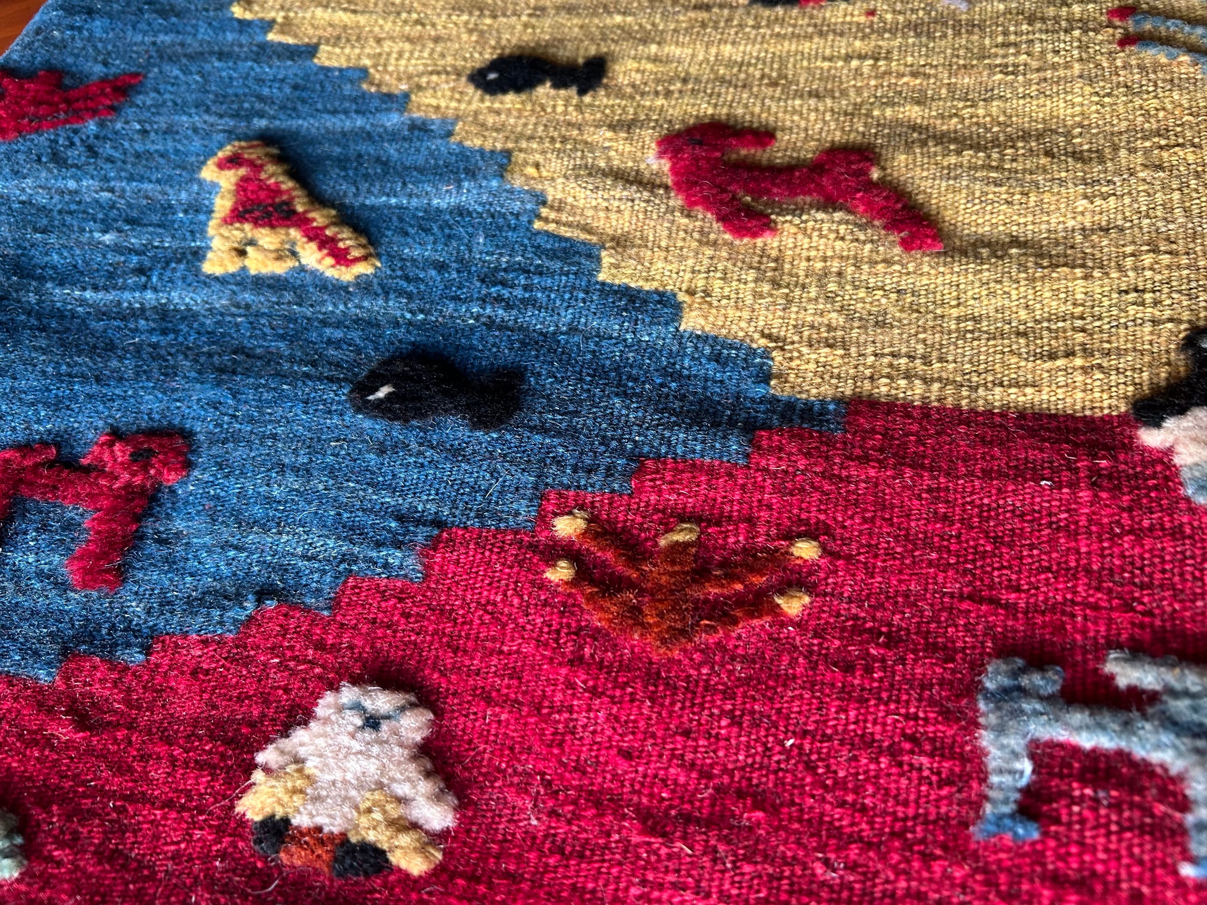 サイズ45✖️45cm。シラーズとは産地のこと。ギャベの産地として有名な産地イランのシラーズで作られたクッションカバー。全て一点もの。ウール100%。洗う時は、お湯は使わずに、水洗いでお願いします。フィラーはついてません。