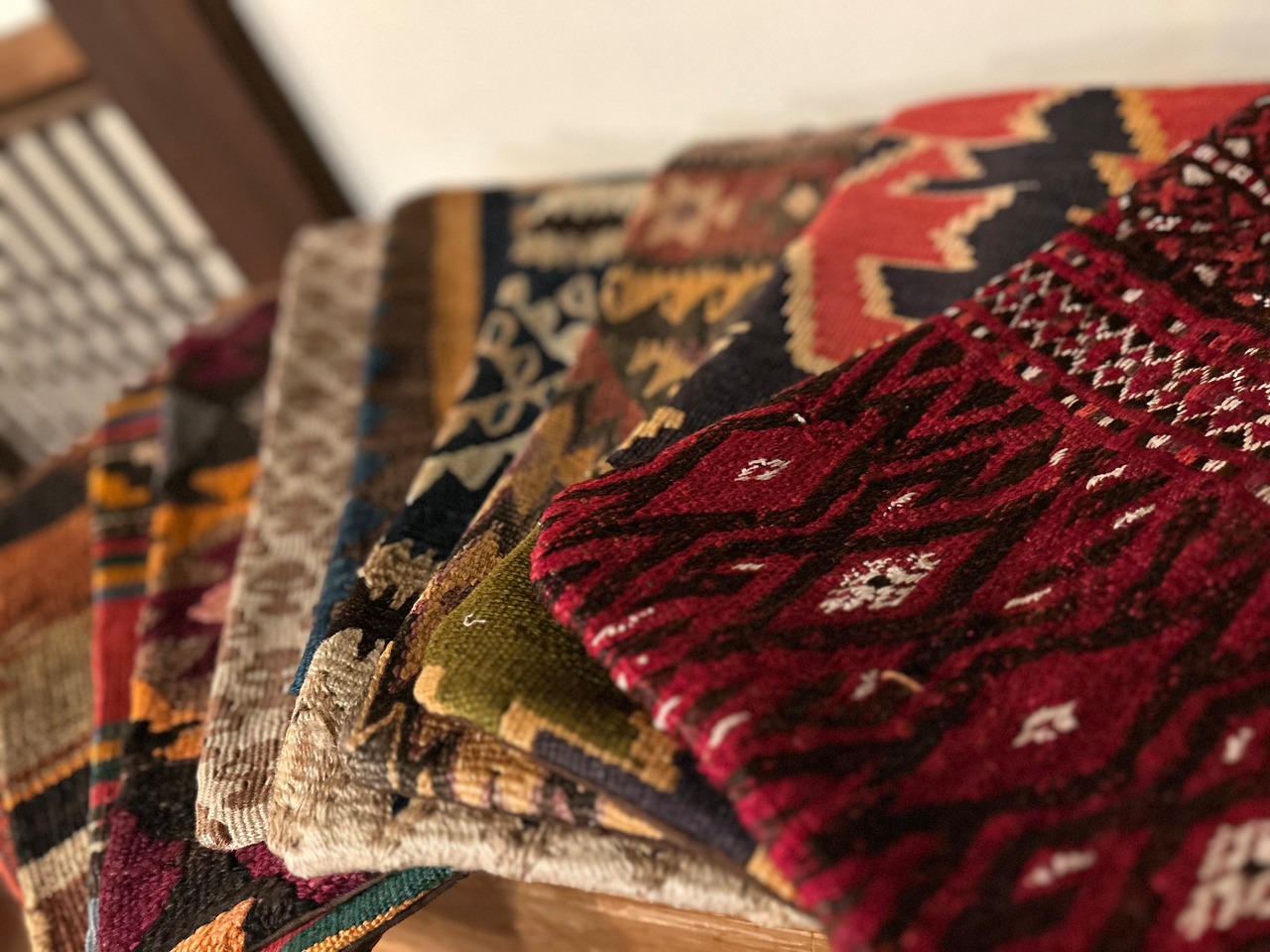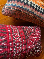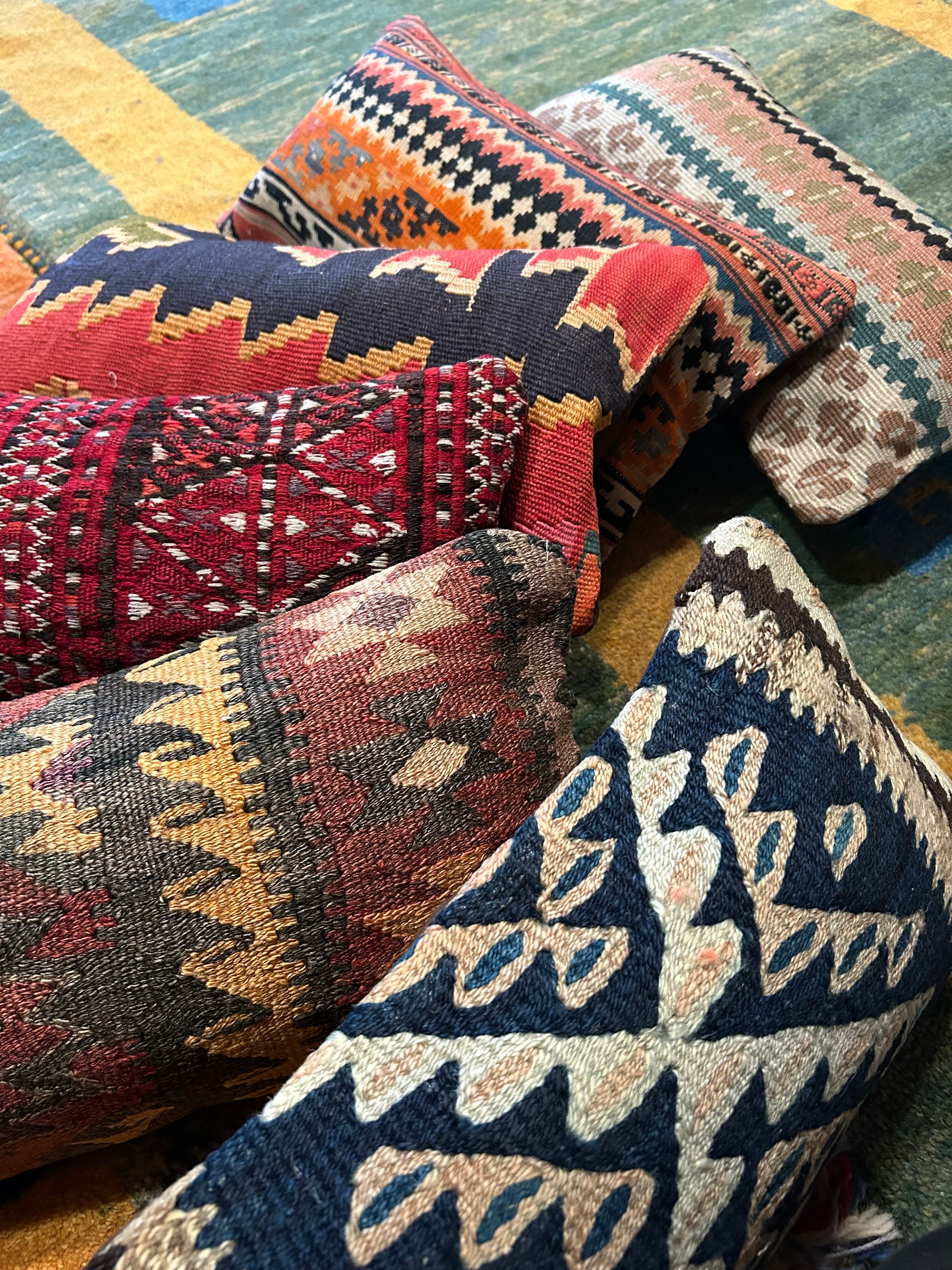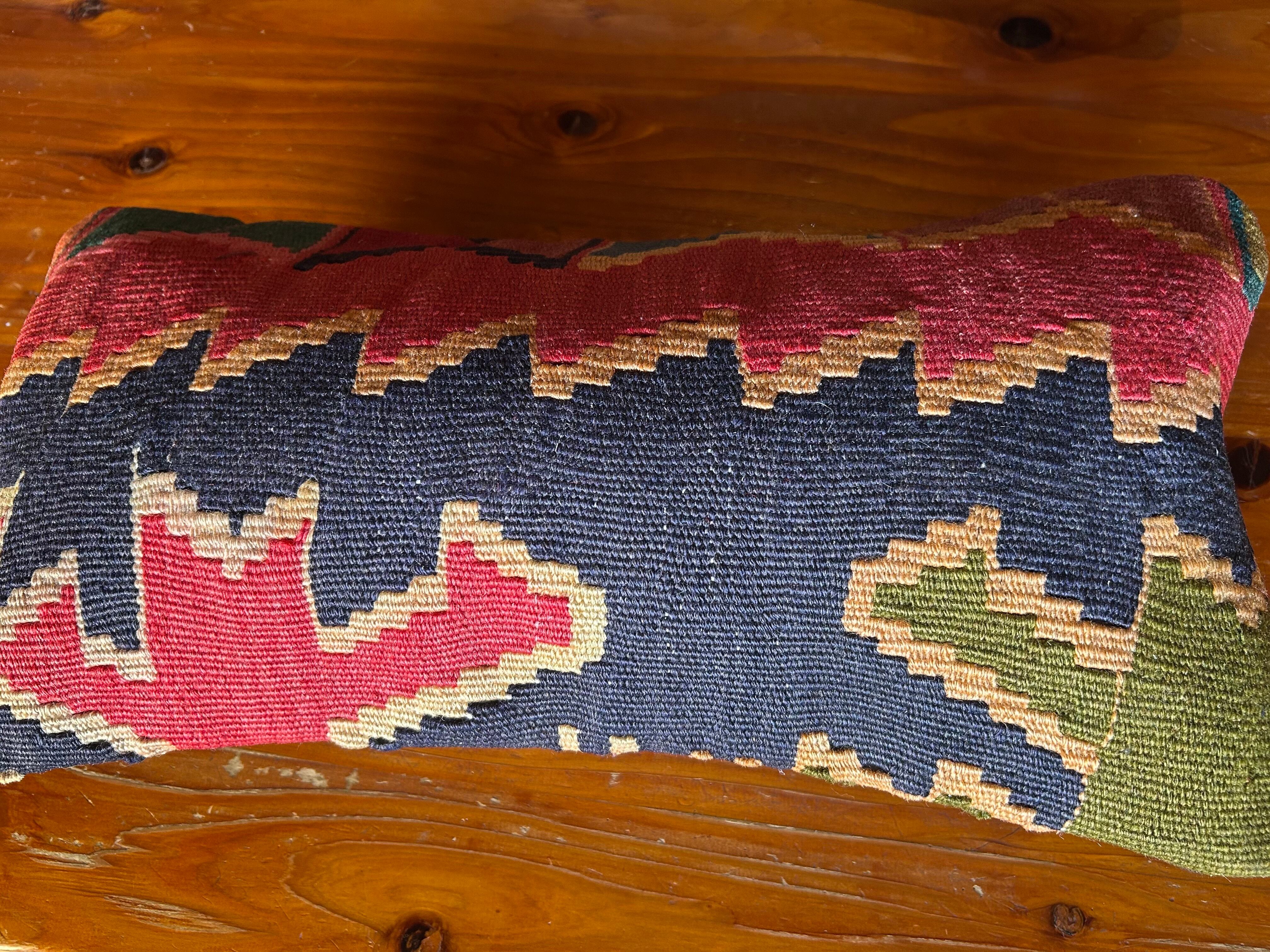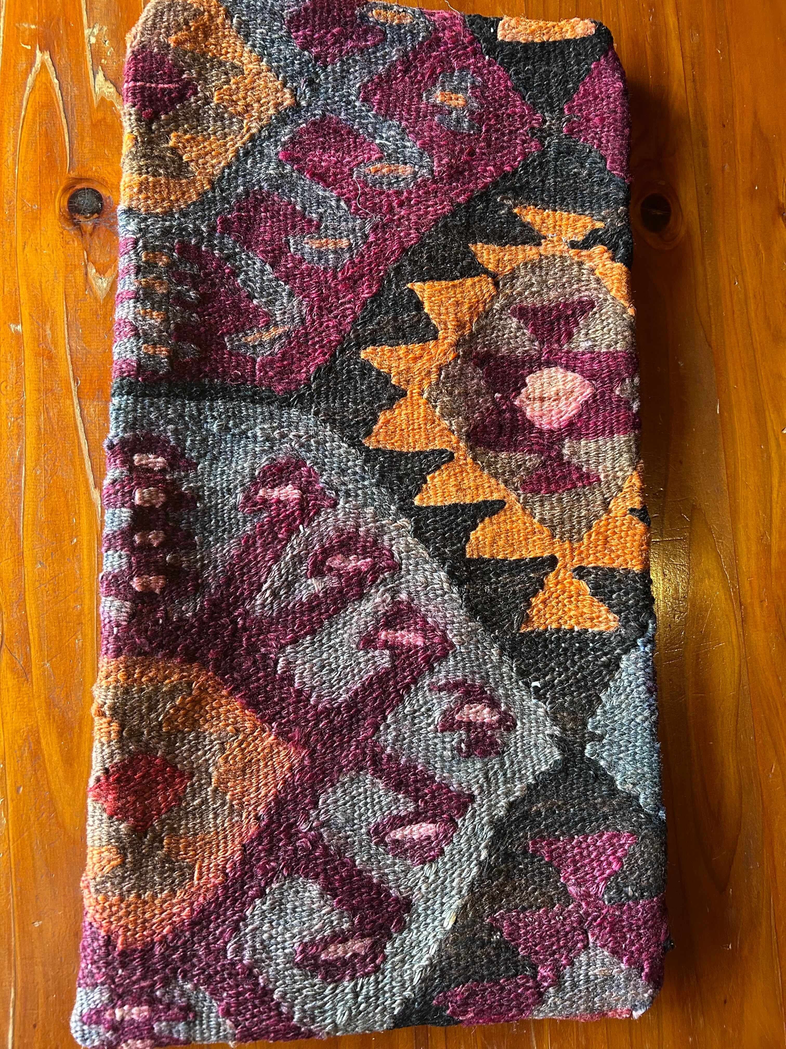 サイズ23✖️45cm。オールドキリムの風合いが何とも言えない一点もの。魔除けや豊穣、繁栄、友愛を示すそれぞれの柄も魅力。ウール100%。洗う時は、お湯は使わずに、水洗いでお願いします。フィラー入り/なしで柄の区別をつけてますが、フィラーは別売り990円です。フィラーも欲しい方は先にメッセージくださいませ。